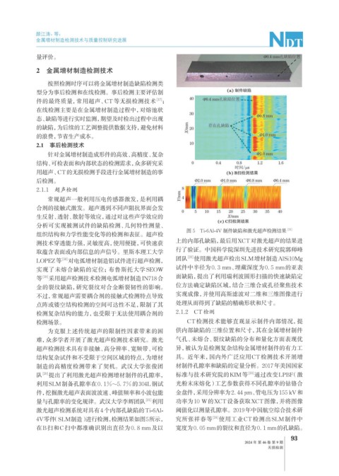 测技术穿透能力强,灵敏度高,使用便捷,可快速获 上的内部孔缺陷,最后用XCT对激光超声的结果进