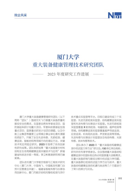 技术和应用验证研究,2023 年取得了系列创新 团队承办了 2023 年“重大装备结构健康监