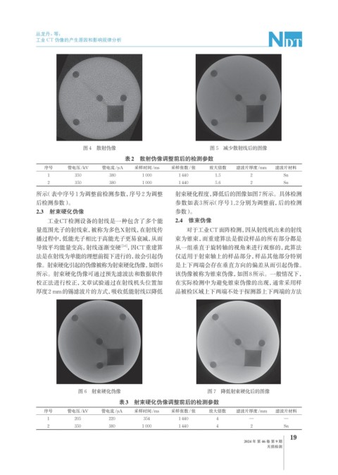 所示(表中序号1为调整前检测参数,序号2为调整 射束硬化程度,降低后的图像如图7所示。具体检测