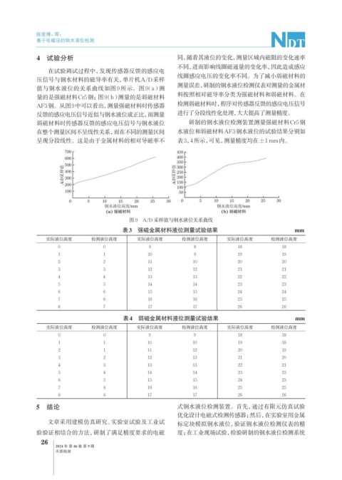 在整个测量区间不呈线性关系,而在不同的测量区间 水液位和弱磁材料AF3钢水液位的试验结果分别如