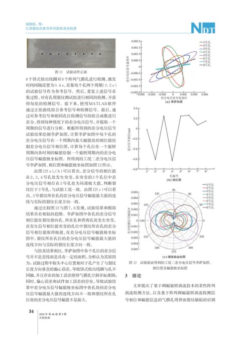 位处的差分电压信号幅值不是最大。 号相位和幅值信息的气膜孔周背面裂纹缺陷的识别
