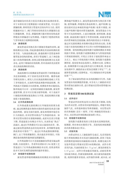 检测,扫查范围大。作者所在团队对LNG装置工艺 安装外管进行带液双层管DR检测试验。试件介质