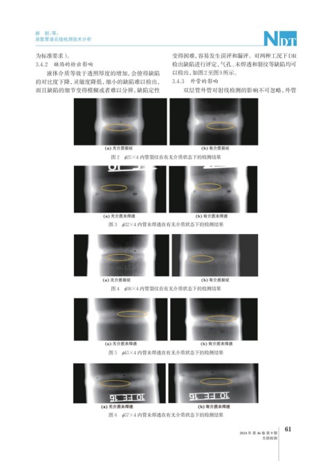 液体介质等效于透照厚度的增加,会使得缺陷 以检出,如图2至图9所示。