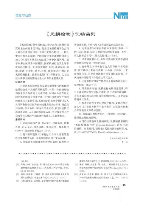 后投稿。如有疑问,请致电《无损检测》编辑部,电