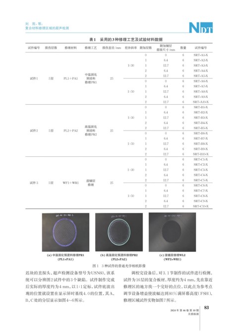 统可以分辨图2试件中的3个缺陷。试件制作完成 试件为16层的复合板材,厚度约为4 mm,先在靠近