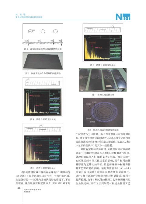 在划分好的一个区域内并确认完好的情况下,不改 超声检测,由于 3 种试件的修理工艺和修理材料组
