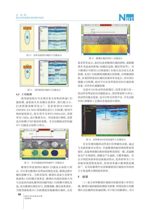 图 11 试件损伤区域的 B 扫描显示 完成对180块试件的检测后,结果发现只有一
