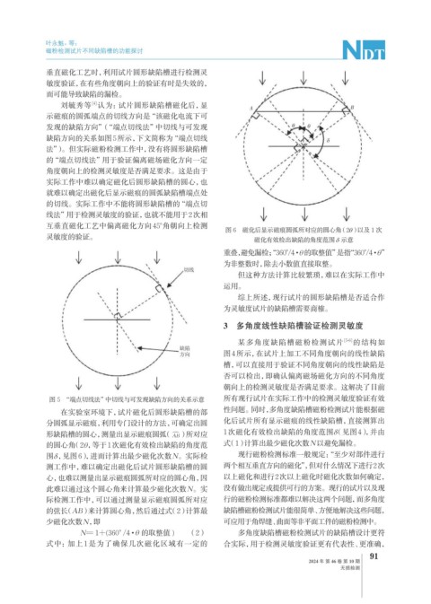 的圆心角(2θ,等于1次磁化有效检出缺陷的角度范 式(1)计算出最少磁化次数N以避免漏检。