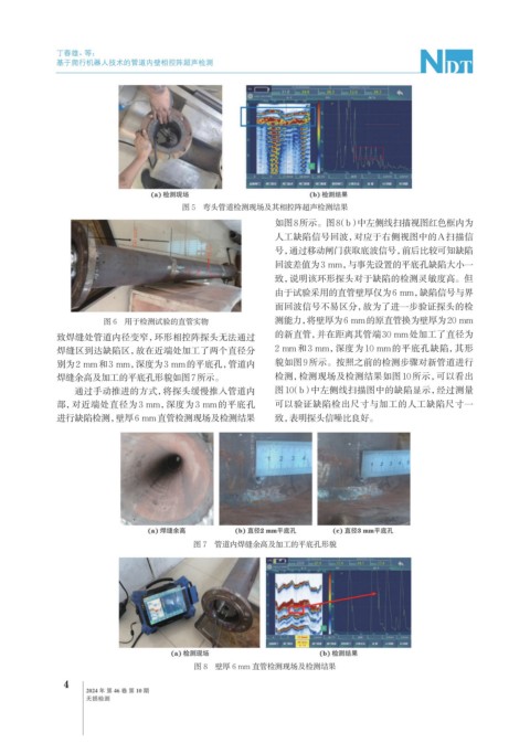 焊缝余高及加工的平底孔形貌如图7所示。 检测,检测现场及检测结果如图10所示,可以看出