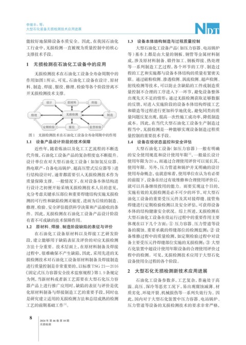 无损检测技术在石油化工设备全寿命周期中的 程的工艺和实施都与设备本体结构的质量有紧密关