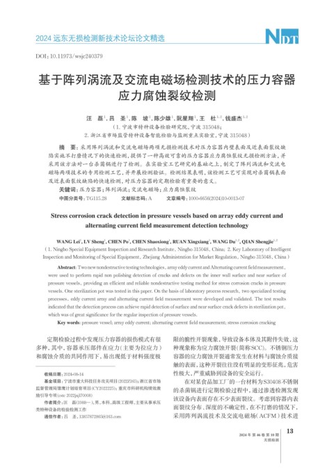 Key words: pressure vessel; array eddy current; alternating current field measurement; stress corrosion cracking