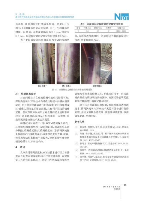 文章采用阵列涡流和ACFM技术进行压力容器 检测. 2014,36(12):42-45.