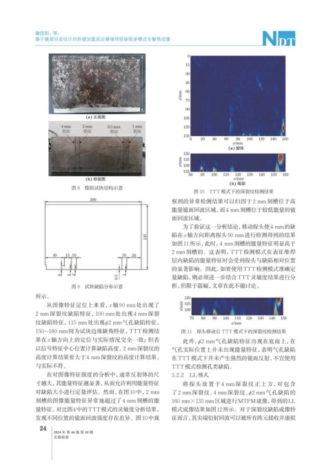 量特征。对比图4中的TTT模式的灵敏度分析结果, 模式成像结果如图12所示。对于深裂纹缺陷成像特