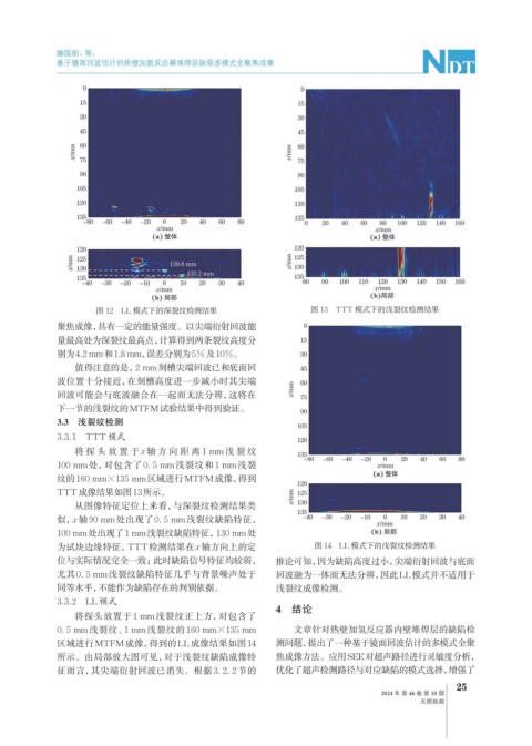 征而言,其尖端衍射回波已消失。根据3. 2. 2节的 优化了超声检测路径与对应缺陷的模式选择,增强了