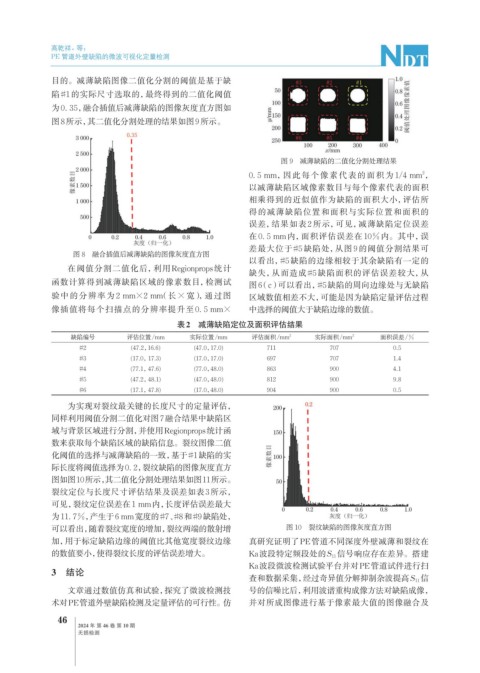 际长度将阈值选择为0. 2,裂纹缺陷的图像灰度直方