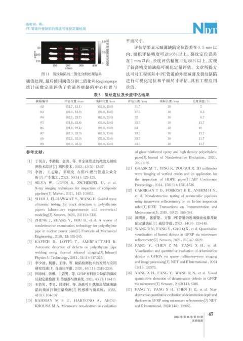 图 11 裂纹缺陷的二值化分割处理结果 法可对工程实际中PE管道的外壁减薄及裂纹缺陷