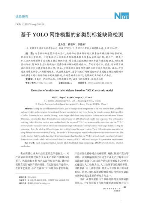 defects in heat transfer labels, with an overall detection accuracy of 98%, which can meet practical production requirements.