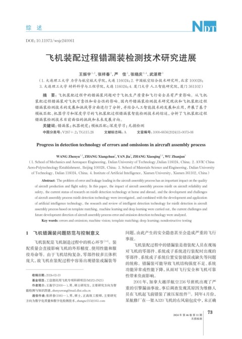 模板匹配、机器学习和深度学习的飞机装配过程错漏装智能检测技术的综述,分析了飞机装配过程