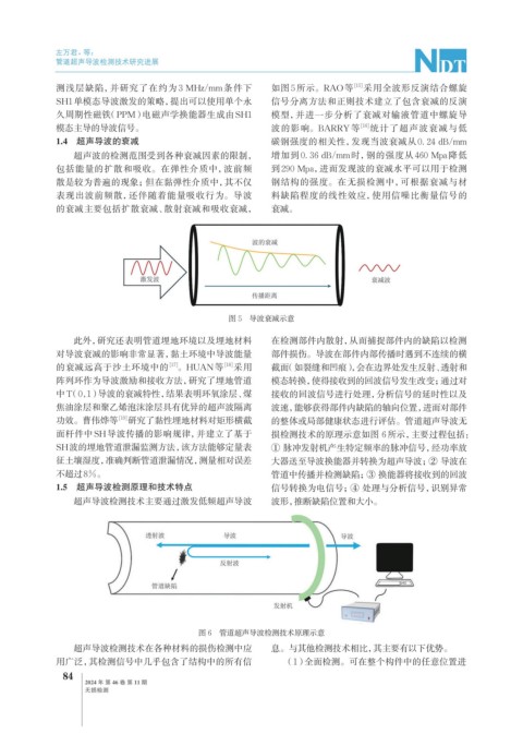 功效。曹伟烨等 [19] 研究了黏性埋地材料对矩形横截 的整体或局部健康状态进行评估。管道超声导波无
