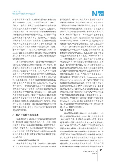 取、多模态分离以及复杂信号的处理。其中,信号 过导波模态特性与缺陷特性之间的关联识别缺陷。
