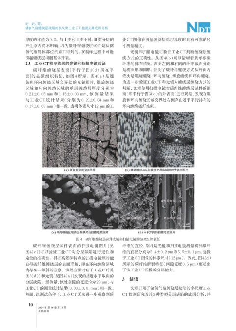 工业CT的测量统计结果 (0. 03±0. 01 mm)相一致。 文章开展了储氢气瓶缠绕层缺陷的多尺度工业