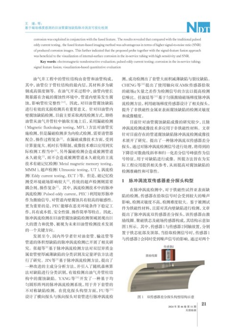进行有效的无损检测具有重要意义。针对旧油管内 提升了非铁磁性金属亚表面腐蚀缺陷的检测灵敏度