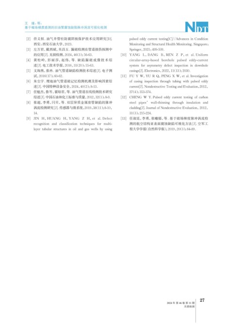 [9] JIN H,HUANG H,YANG Z H,et al. Defect [13] 任淑廷,李勇,张曦郁,等. 基于磁场梯度脉冲涡流检