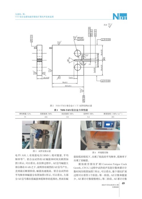 7050 铝合金腐蚀疲劳裂纹扩展的声发射监测