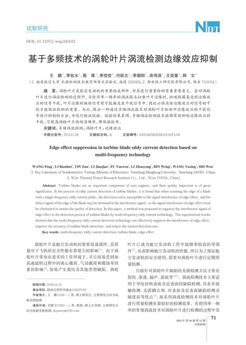 Key words: multi-frequency eddy current detection; turbine blade; edge effect