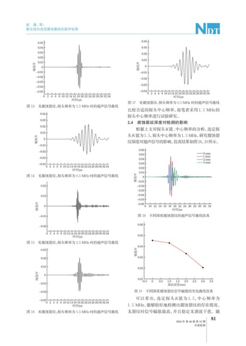 1. 5 MHz,能够较好地检测出腐蚀裂纹的存在情况。