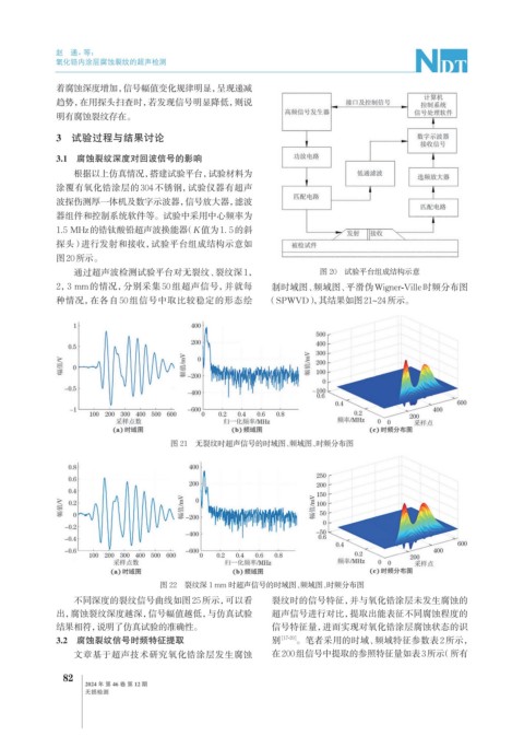 2,3 mm的情况,分别采集 50 组超声信号,并就每 制时域图、频域图、平滑伪Wigner-Ville时频分布图
