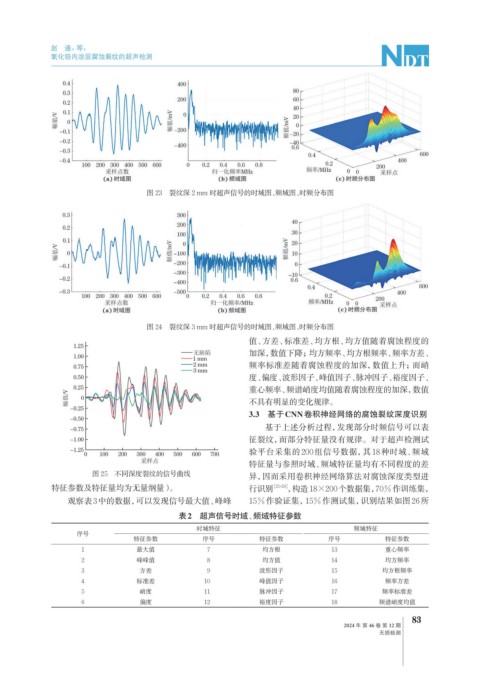 图 23 裂纹深 2 mm 时超声信号的时域图、频域图、时频分布图