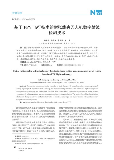 Key words: unmanned aerial vehicle; digital radiographic; strain clamp; FPV