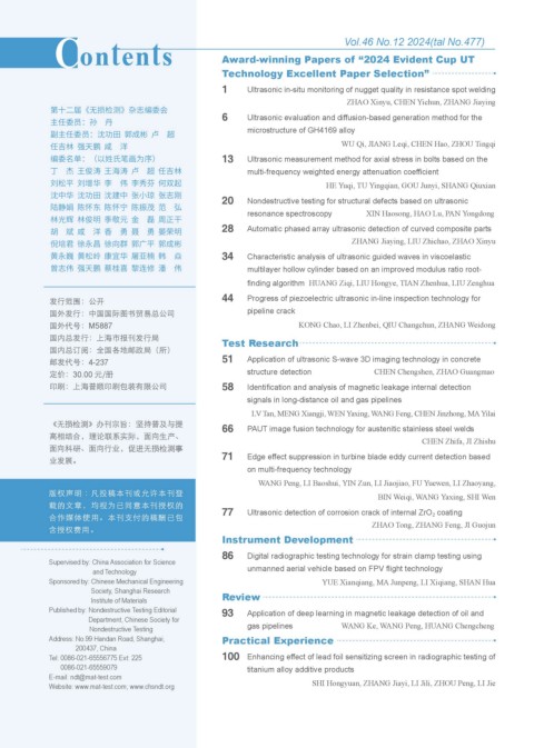 合作媒体使用。本刊支付的稿酬已包 77 Ultrasonic detection of corrosion crack of internal ZrO 2 coating