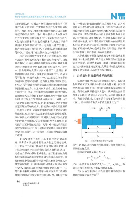回波的渡越时间变化来间接得到应力大小。近年 法,该方法的测量精度更高,尤其是对高强度短螺栓