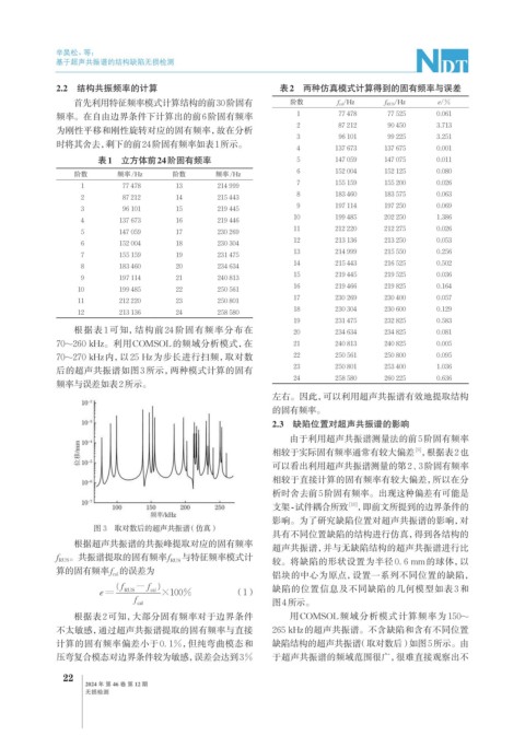 首先利用特征频率模式计算结构的前30阶固有 阶数 f cal /Hz f RUS /Hz e/%