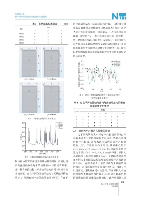 缺陷3 0 0 6 致。根据图6和表4可以看出, 缺陷位于不同位置时,