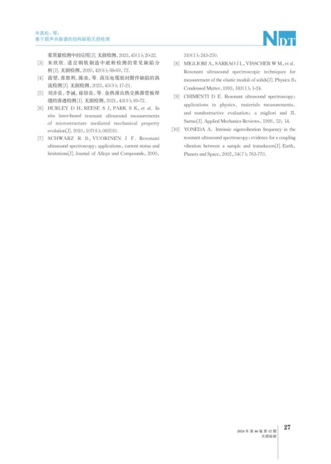 析[J]. 无损检测,2020,42(6):68-69,72. Resonant ultrasound spectroscopic techniques for