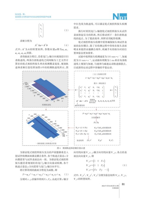 求得曲面方程后,沿着龙门y轴方向规划设计扫 试验中按照探头检测速度为100 mm · s ,加速