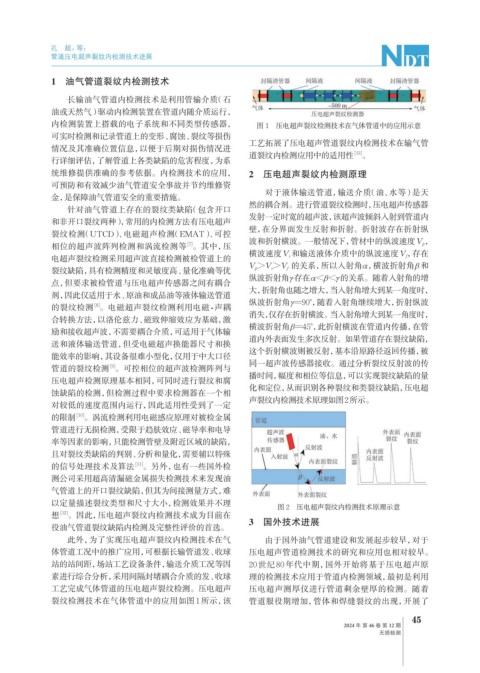体管道工况中的推广应用,可根据长输管道发、收球 压电超声管道检测技术的研究和应用也相对较早。