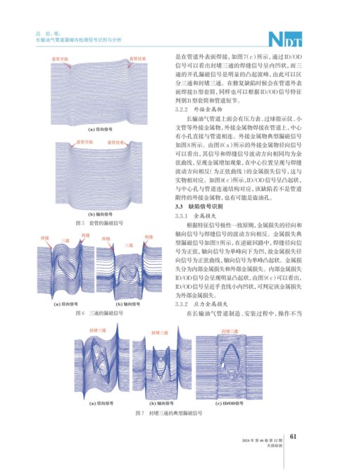 图 6 三通的漏磁信号 在长输油气管道制造、安装过程中,操作不当