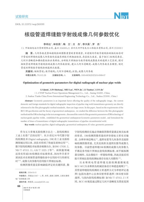 关键词:核级管道;数字射线;几何不清晰度;K值;成像几何参数