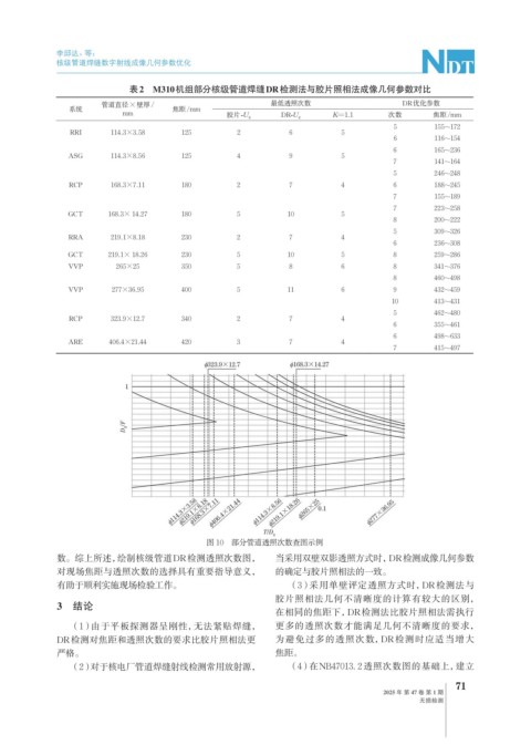 表2 M310机组部分核级管道焊缝DR检测法与胶片照相法成像几何参数对比