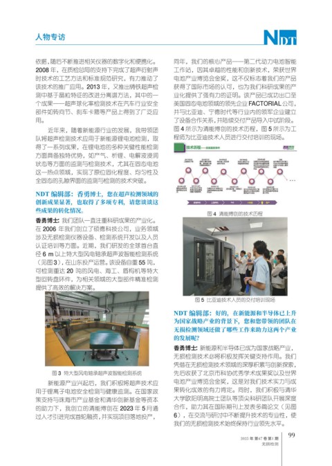 队将超声检测技术应用于新能源锂电池检测,取 程师为比亚迪技术人员进行交付培训的现场。