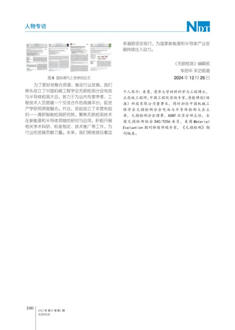 相关学术科研、标准制定、技术推广等工作,为 Evaluation 期刊特邀审稿专家,《无损检测》期