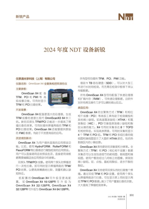 倍。新的双探头 TFM/PCI 功能进一步提高了焊