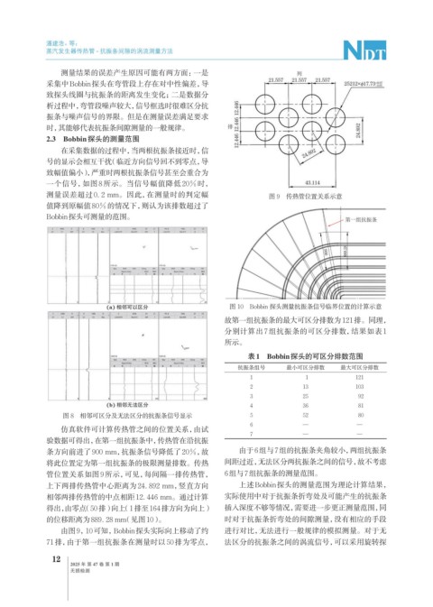 上下两排传热管中心距离为24. 892 mm,竖直方向 上述Bobbin探头的测量范围为理论计算结果,