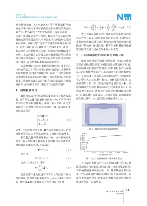 面积得到不同缺陷励磁后的信号波形和数据,再使用 号。文章通过有限元仿真模拟获取试件上的漏磁信