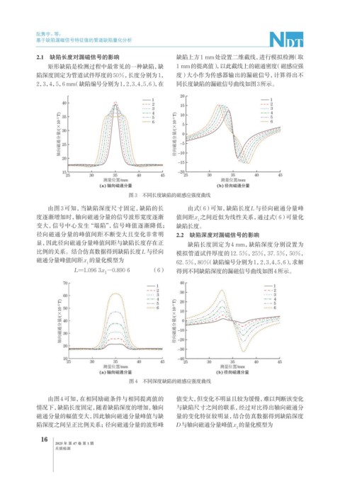由图 3 可知,当缺陷深度尺寸固定,缺陷的长 由式(6)可知,缺陷长度L与径向磁通分量峰