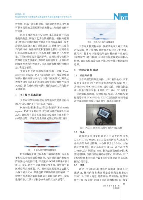 coherence imaging,PCI)无损检测技术,对厚壁球墨 2.1 相控阵仪器